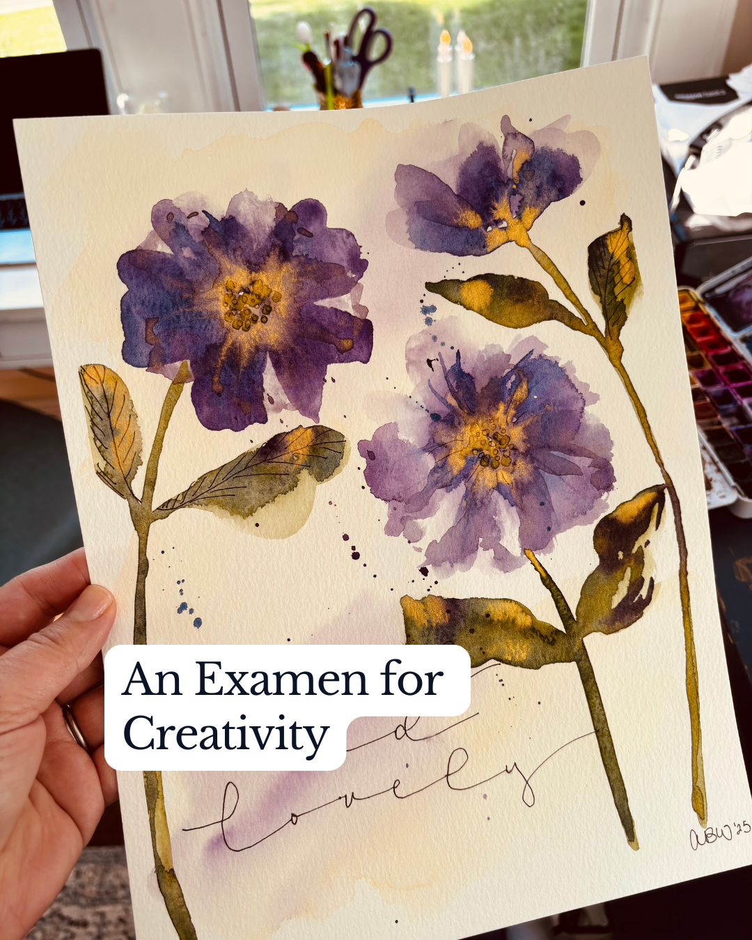 I like to think of the Examen as a way to help us just live with intentionality. It’s easy to let the days slip by without any reflection, one day just flowing into the next. But if we want the moments to last, we need to live with intentionality. This is where the Examen helps us. The Examen (from Ignatian spirituality) is a gentle, prayerful reflection on your day, noticing where you experienced God’s presence, gratitude, and invitation to growth. So I thought it might be helpful to have an Examen specifically for our create and play rhythm.
